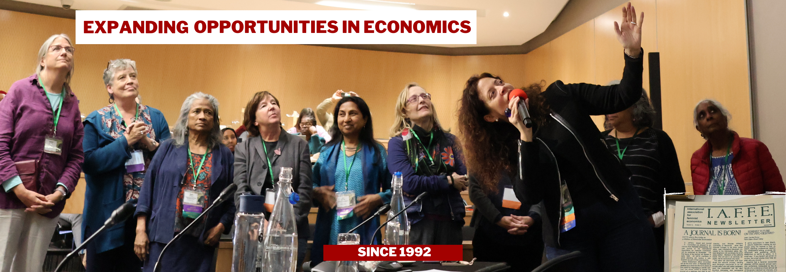 About and HistoryThe International Association for Feminist Economics (IAFFE) is a global community of academics, activists, policy theorists, and practitioners who share a common purpose: advancing gender-aware and inclusive economic research and policy analysis. Our aim is to foster gender equality and improve the well-being of all, particularly those facing the greatest socio-economic exclusion. The association’s award-winning journal, Feminist Economics, opens new areas of economic inquiry, fosters critical exchanges and enlarges and enriches economic discourse. IAFFE is a membership-based organization that was founded following the 1990 meetings of the American Economics Association in Washington, D.C. Since then, it has grown to include 800 members from over 90 countries. IAFFE’s influential network of scholars, activists, and advocates has defined and shaped feminist economics since the association’s founding and has had a tangible impact on scholarship and policy. “IAFFE was founded as a professional organization meeting the need and desire for an active, nonsexist organization for feminists in economics in a context in which that work was marginalized because of sexism in the discipline.” (Orozco Espinel and Gomez Betancourt, 2022)Benefits of Membership